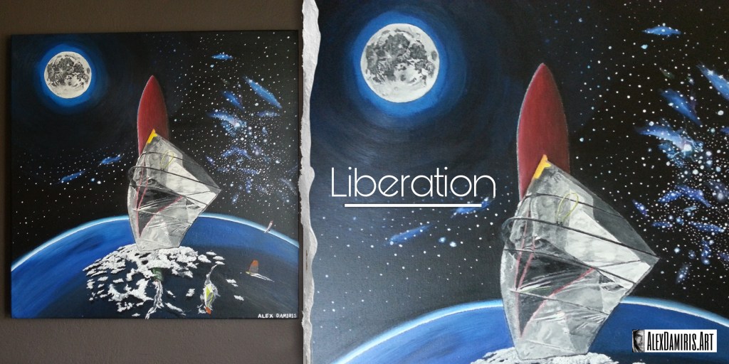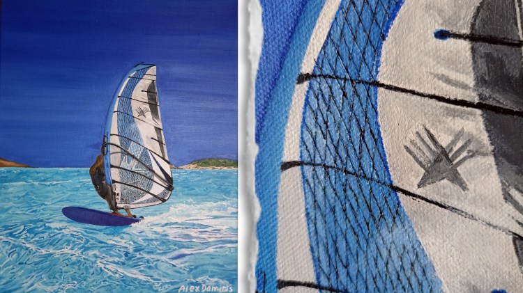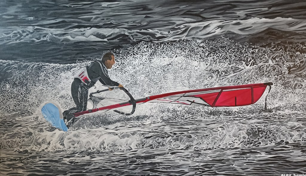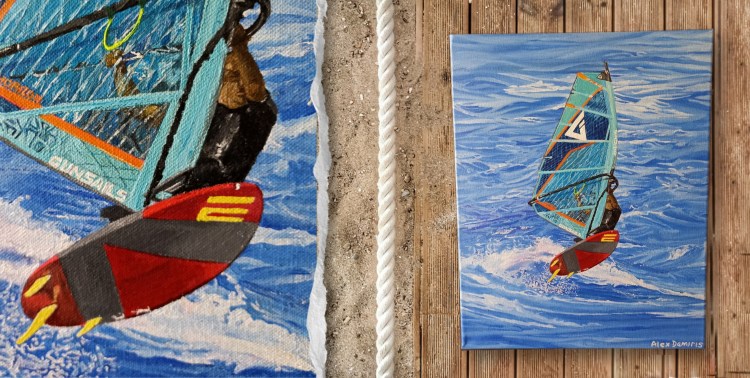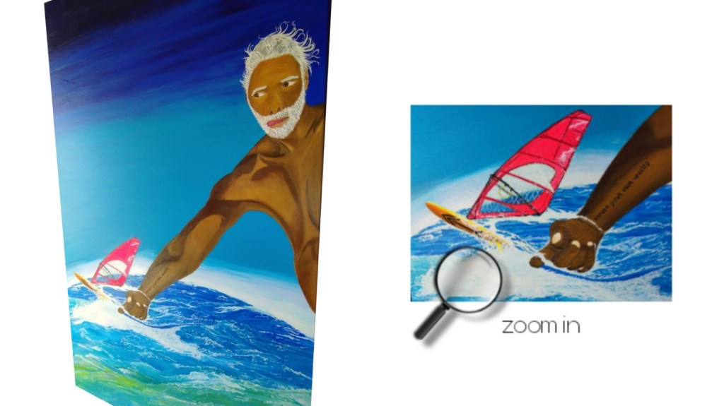 The name of the painting is ‘Create Your Own Reality.’ It’s about accomplishing whatever you want in life and creating the reality you want to live. You just have to believe in it and work for it with dedication until you make it… In windsurfing, nothing is given to you if you don’t put in the hours and effort to succeed. This is a brilliant example and lesson for our life.