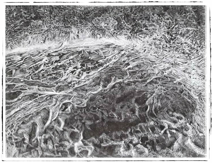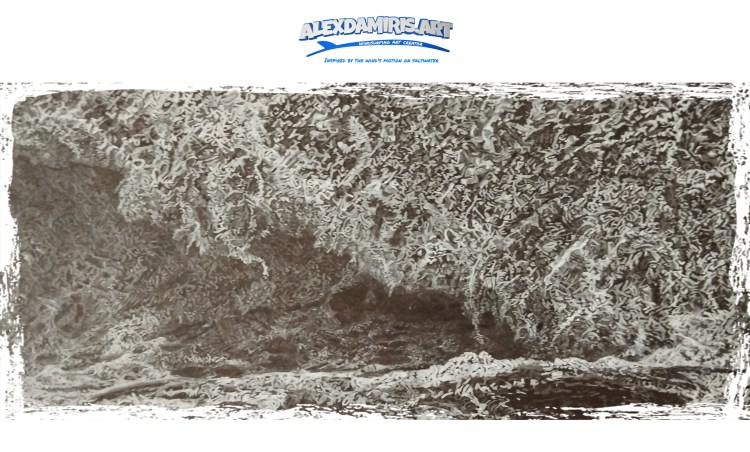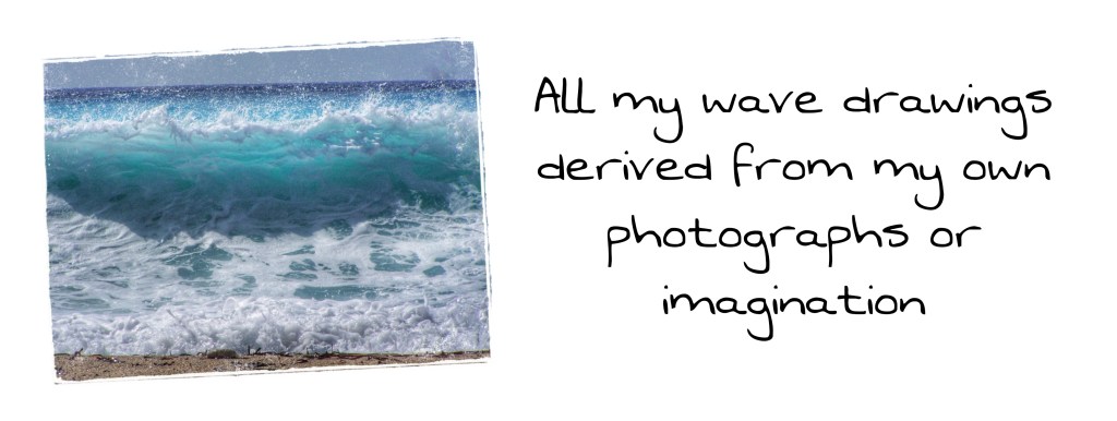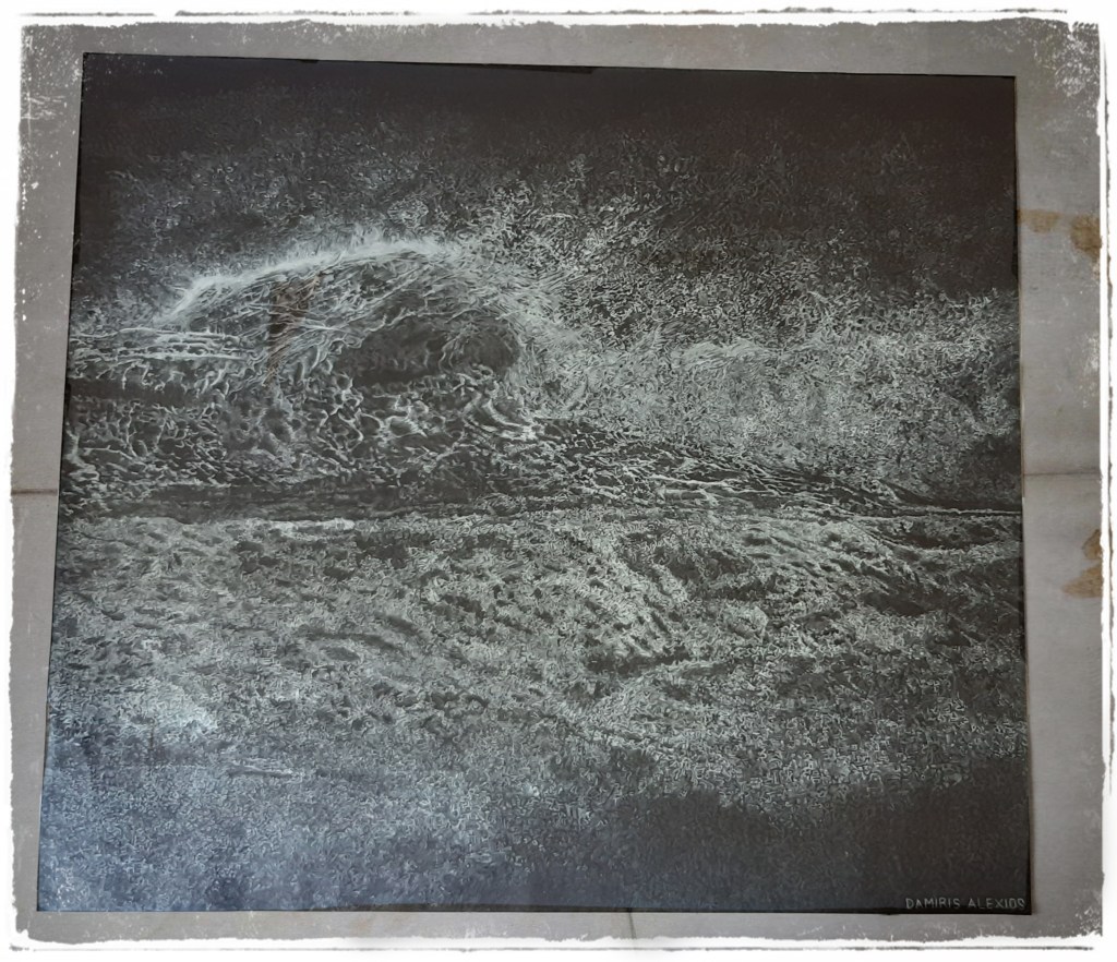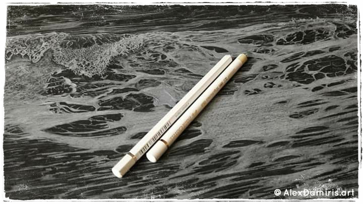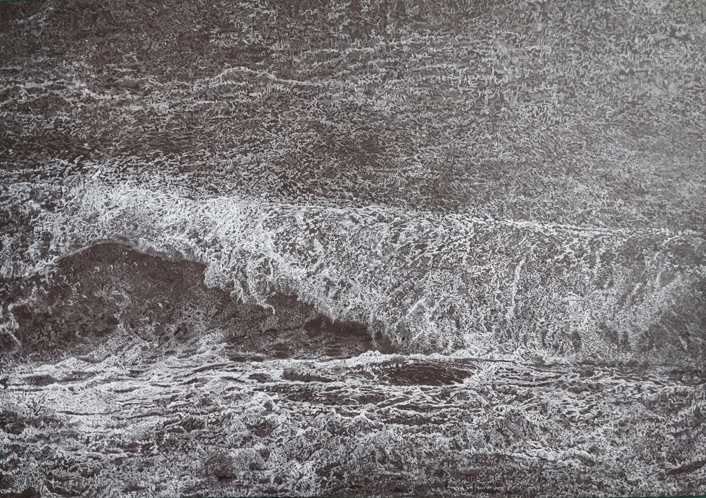 A wave drawing with white pencil in black paper